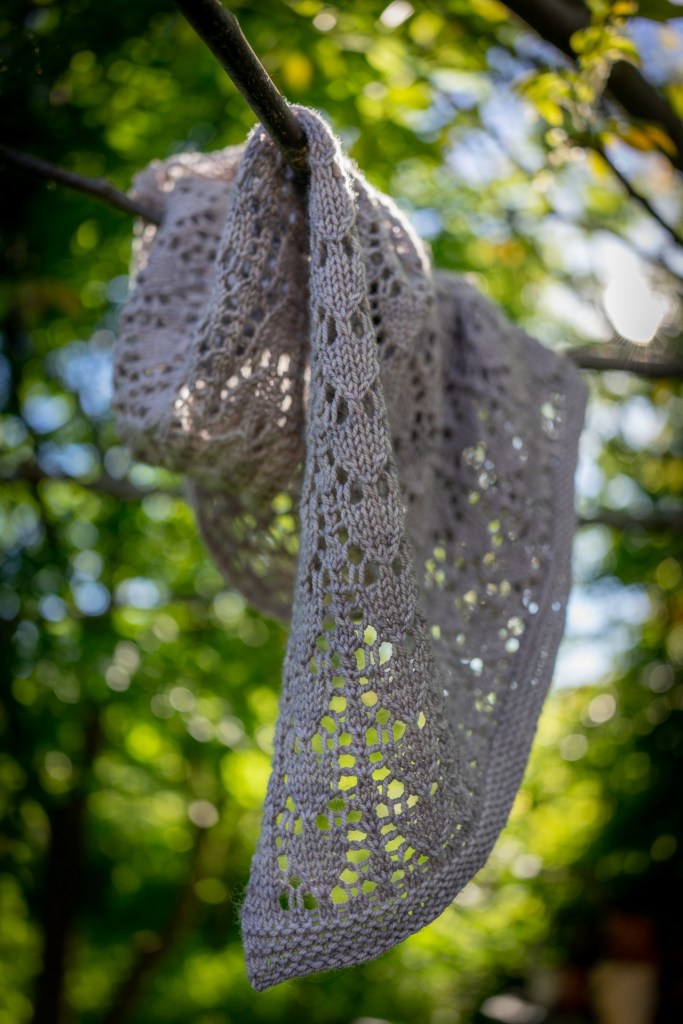 Tulip Chest is an asymmetric triangle shawl with stunning lace. The lace pattern is fun to knit and reminds of tulip. With lace work on right-side rows only, and wrong side rows all in purl, this makes a great beginning lace knitting project, or a quick gift knit. You can easily make this shawl your own by working the pattern repeat as many times as you want.